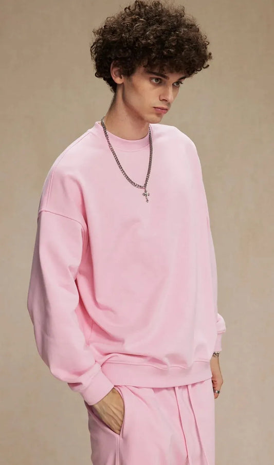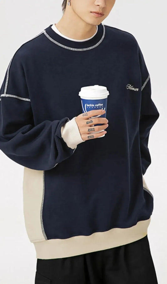 Men's Contrast Round Neck Drop Shoulder Sweatshirt