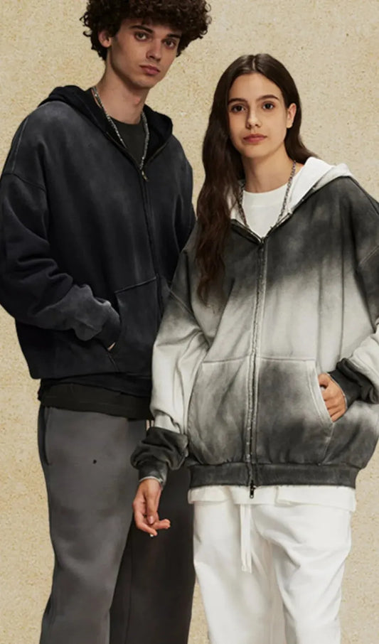 Men's Gradient Zip Up Drop Shoulder Hoodie