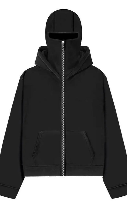 Men's Zip Up Long Sleeve Hoodie with Mask