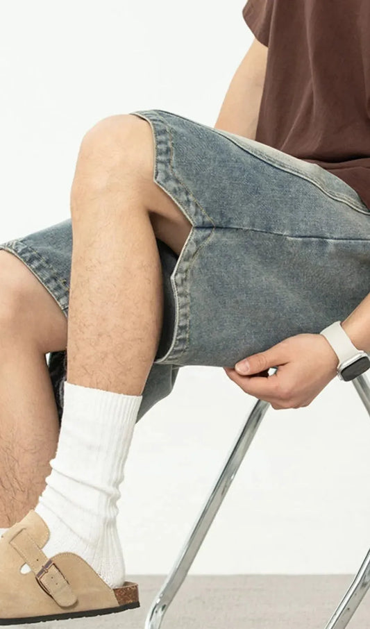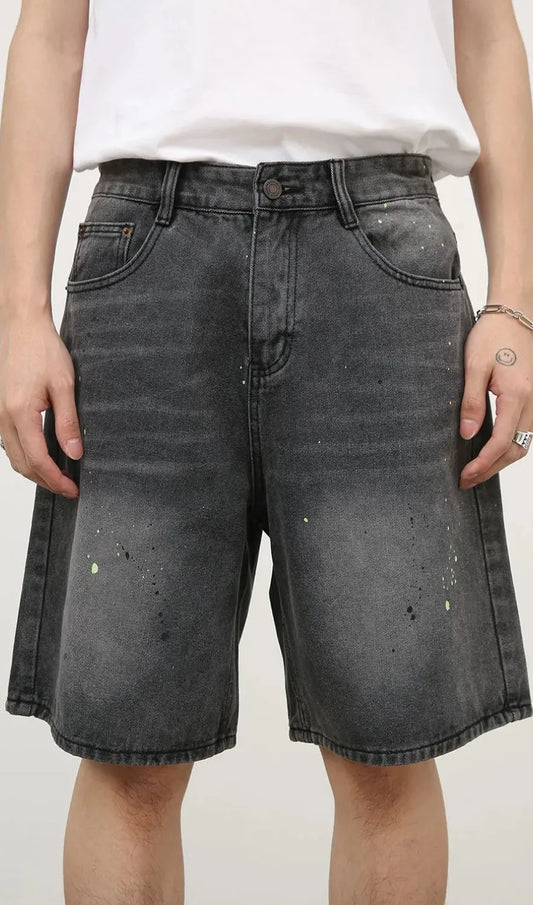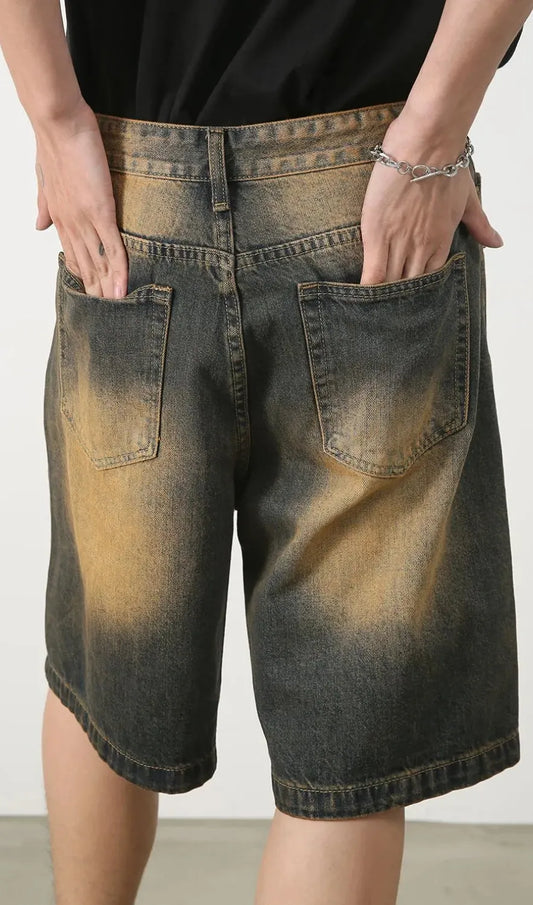 Men's Washed Rhinestone Denim Bermuda Shorts