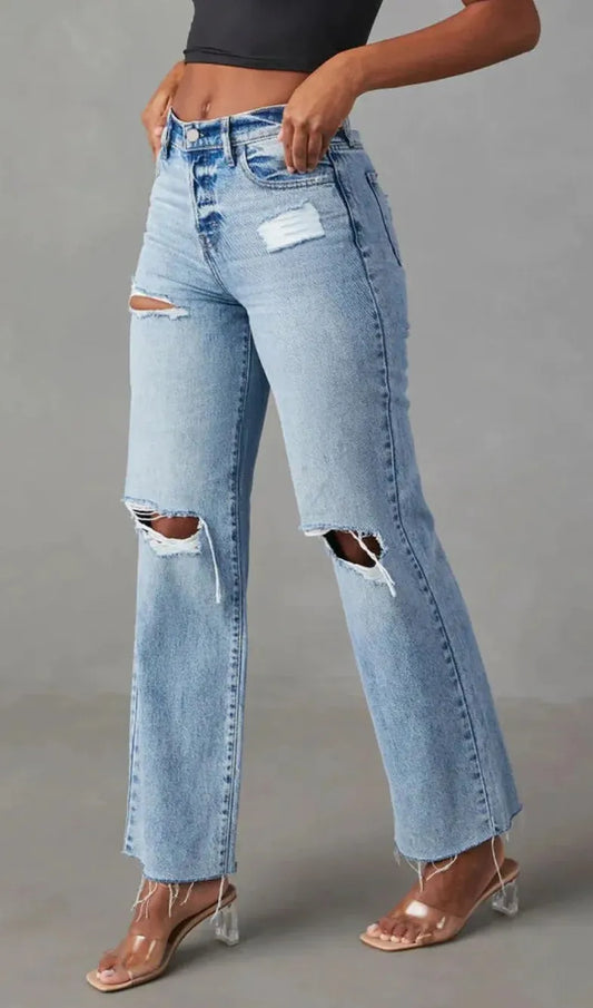EsgotadoDistressed Rebel Raw Hem Jeans